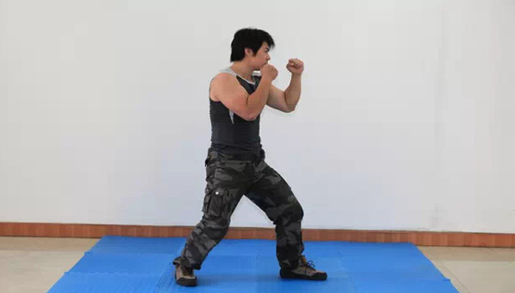 降低重心,成浅位前弓步状,这样身体更加平衡,减小被挤倒的机率。