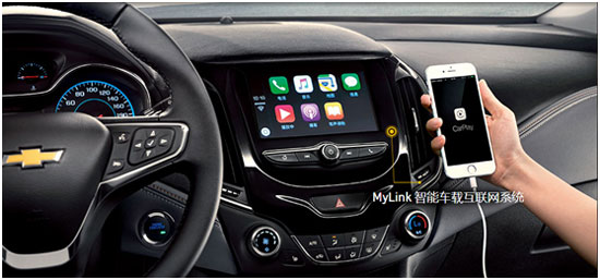 新科鲁兹搭载雪佛兰全球新一代MyLink智能车载互联系统,并且全系标配7英寸多点触控电容彩屏与苹果 CarPlay车载系统,可支持百度Carlife,在车内大屏上即可轻松实现智能手机的众多功能。此外,全新科鲁兹还搭载了新一代安吉星4G LTE原装集成车载Wi-Fi,在700平方米范围内可同时接入7个WiFi设备,提供别样的互联出行体验。