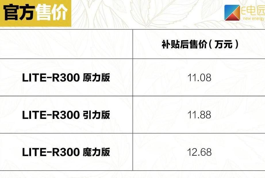 5月20日,北汽新能源LITE正式推出了升级版车型LITE-R300。新车此次是针对车身颜色以及续航里程的一次升级,综合工况续航将达到300km。而所推出的3个配置车型补贴后的价格区间为11.08万-12.68万元。