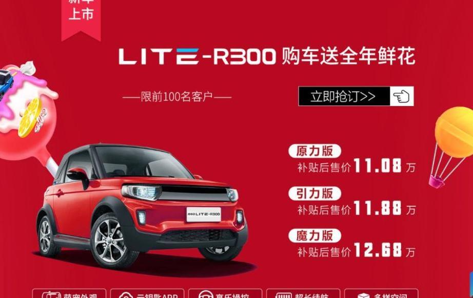 北汽新能源LITE-R300此次选择了在京东商城以及苏宁易购两个网络平台上市,新车共推出了原力版、引力版和魔力版三个车型。