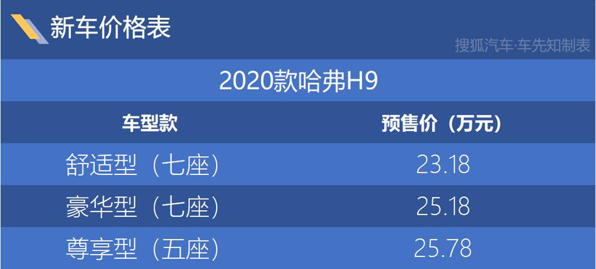 近日,我们从相关渠道获悉,新款哈弗H9正式开启预售,共推出3款车型,预售价区间为23.18-25.78万元。据悉,新车将会在8月份正式上市。