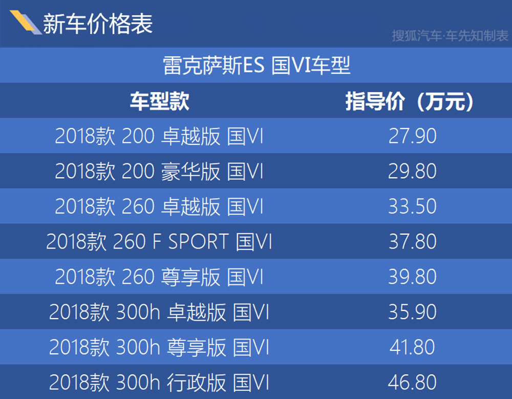 近日,我们从雷克萨斯官方获悉,旗下ES国Ⅵ车型正式上市,共计8款车型,售价区间与国Ⅴ车型保持一致,仍为27.90-46.80万元,未来国Ⅴ与国Ⅵ车型将同时销售。