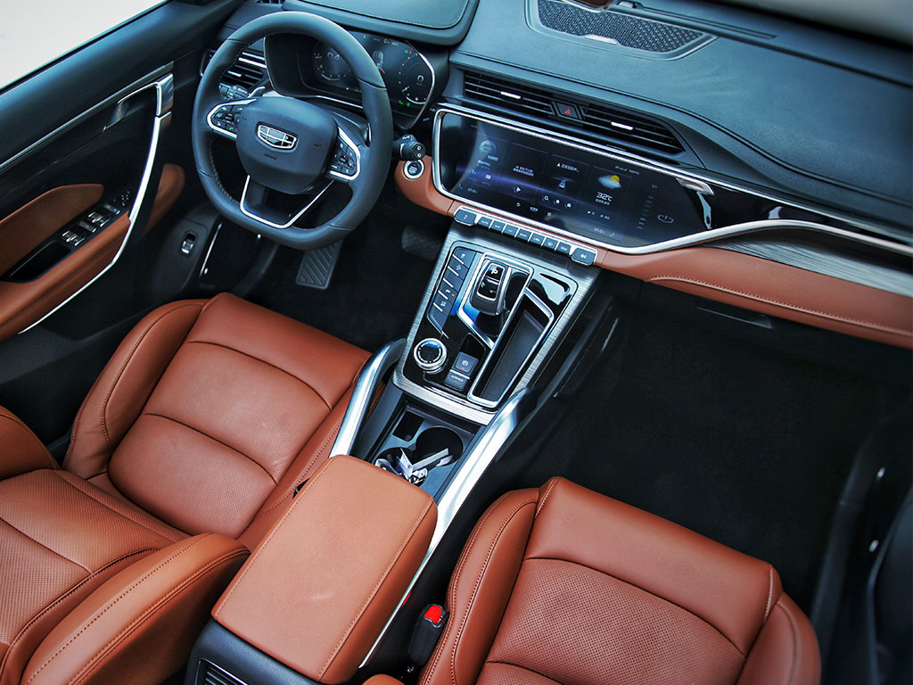 博越PRO传承了吉利家族化设计,在颜值方面更出众。博越PRO内饰的科技感很强,配备12.3寸高清中控大屏与仪表盘。