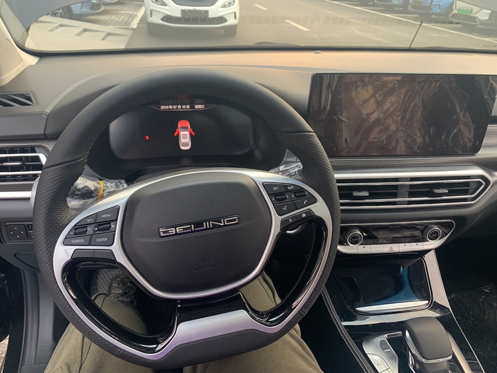 新车的前脸采用了新能源车型标志性的封闭式格栅设计,中间logo也变成了“BEIJING”字样,标志性的C型日间行车灯得到保留。
