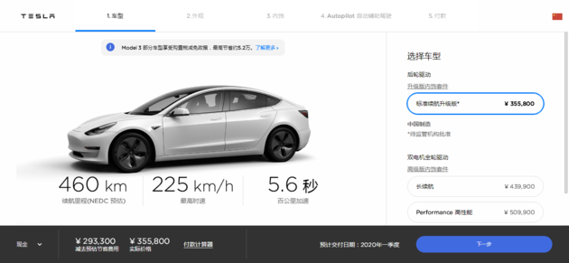 与此同时,特斯拉还正式公布了国产MODEL 3的官方售价,为35.58万元。值得关注的是,该车型已经包含基础版辅助驾驶功能且必须选装,而进口标准续航升级版车型也已经从官网下线,新车预计将在2020年第一季度开始交付。
