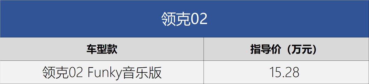 近日,我们从领克官方获悉,旗下领克02 Funky音乐版车型上市,售价为15.28万元。作为首发的222台音乐版车型将于10月31日20:02在领克商城开启预订,针对首发车型官方提供与JBL、猫王音响等合作的魔音礼包。