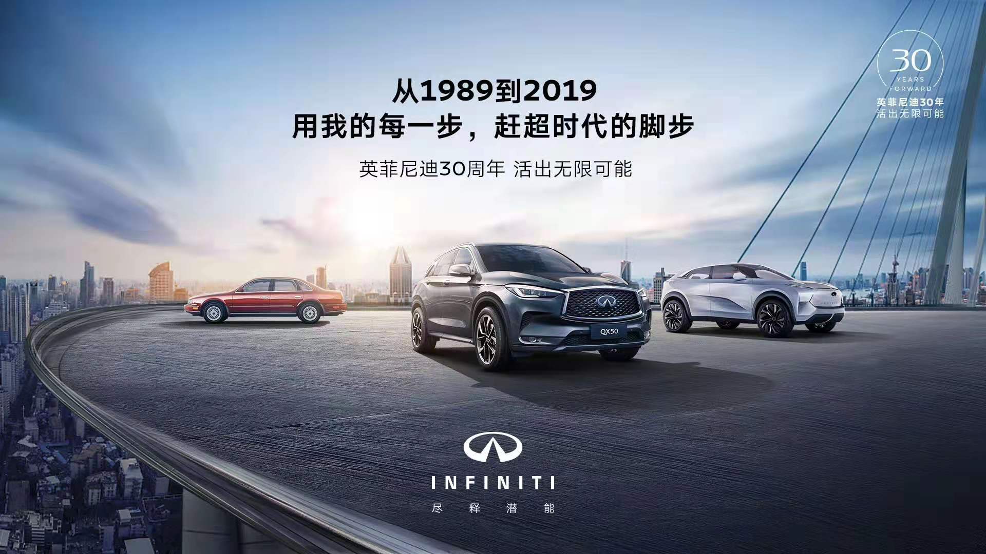 今年是英菲尼迪品牌成立30周年,以此为全新起点,英菲尼迪将继续发挥在技术、设计与品质上的强大优势,打造更多才貌双全的优质产品和尽显客户关怀的创新体验平台,为用户创造更多价值。