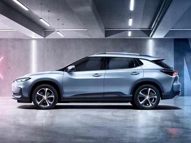 新车长宽高分别为4665/1818/1538mm,轴距为2660mm,它的轴距和微蓝相同,标准的紧凑级轿车定位,长宽高全面比微蓝略大些。从侧面看它的跨界旅行车风格比较强烈,它采用17英寸轮圈,车身采用分段式腰线,搭配较高的轮眉,在A柱和D柱还做了熏黑处理。