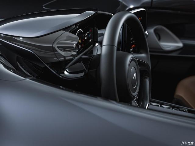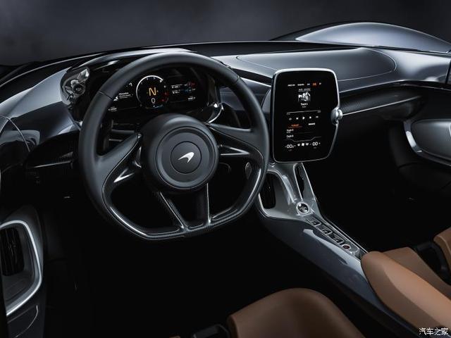 与以往封闭式座舱的车型不同,迈凯伦设计师提出了“模糊边界”设计理念,将外部环境与座舱氛围无缝融合,使得开放式座舱与车体融为一体。仪表显示屏能跟随方向盘转动,中控8英寸显示屏也面向驾驶员一侧,从而方便驾驶者更清楚地查看车辆相关数据。同时为减轻整体质量,车体内的装饰件大面积使用镂空设计,整车没有设计储物空间,仅座舱后部整流罩下可为客户提供放置头盔的空间。