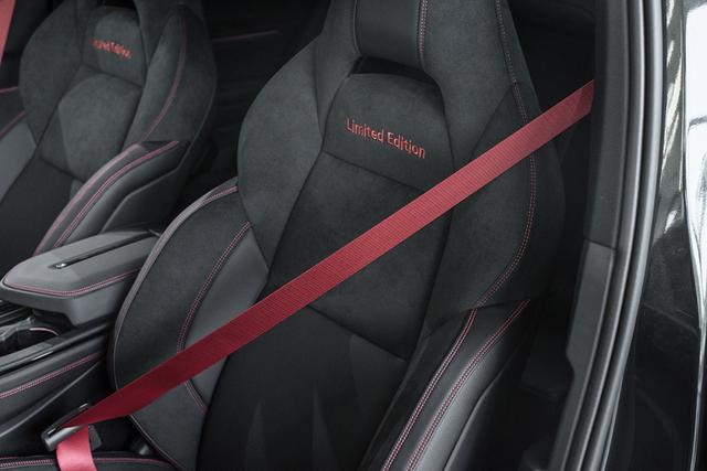 进入到车内,整体的空间表现和普通版车型相当,内饰设计与布局也没有太大改变,座椅选用的也是同样的赛车桶椅风格。不同的地方在于,领克05时间限量版车型的头枕处有着红色刺绣的“limited edition”限量版标识,且有着专属的红色安全带,战斗气息会更加浓厚。顺带一提的是,无论是普通版车型亦或者限量版车型,车内都有随处可见的红色缝线。