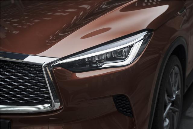 在外观设计上,QX50以极具美感的设计语言来实现使用功能,赋予车辆颜值出众、功能出色的独特魅力。山脊式腰线设计采用英菲尼迪独特的125°深冲压工艺制造而成,不仅造就雕塑感立体身形,同时减少空气阻力;海浪纹中网静中取动、柔中带刚,以海浪般的优雅线条勾勒层叠气势;如星光般耀目的星际矩阵大灯具备远近光自动调节功能,提高夜间行车安全;弯月形D柱则以天幕上纤细弯月为意象,流畅而动感的曲线令人过目不忘。