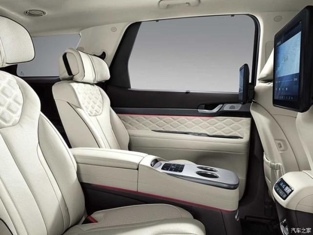 相较于外观来说,新车内部的变化更加明显,升级力度更大。两款新车都提供黑色、卡其色或米色三种不同的内饰颜色供消费者选择。与普通版车型不同的是,两款新车采用了的2+2+3的座椅布局方式,第二排座椅采用独立设计。值得一提的是,VIP车型在此基础之上,还配备了第二排中央扶手、加热/制冷杯架、内置扬声器的航空座椅头枕、无线充电以及后排娱乐系统,使车内质感得到了飞跃式的提升。