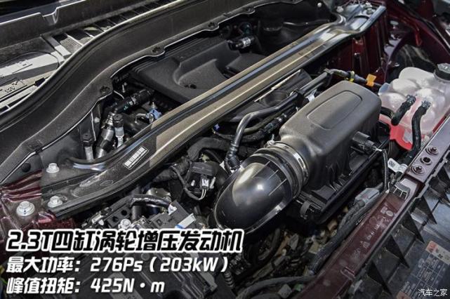 动力方面,新车搭载2.3T四缸涡轮增压发动机,最大功率276马力,最大扭矩425牛·米,并满足国六排放标准,传动系统则匹配10速自动变速箱,官方0-100km/h加速时间为7.6秒。