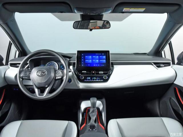 新运动系列内饰延续了美版卡罗拉的设计,采用了极简的造型风格,让空白的地方尽可能的留白,把按键操作区域集中在中控屏附近。相比普通版,它的主要变化在于采用了更多的红色饰条,分布在挡把周围以及门板内侧,提升了运动氛围。