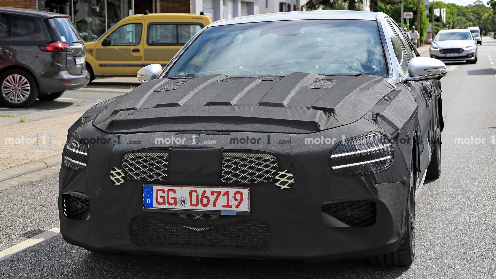 捷尼赛思G70猎装版也将采用最新的外观设计,新车将会换装与G80相似的钻石前脸造型,配合镀铬装饰的话会带来很强的豪华感。新车前包围的进气口也是三段式设计,开头面积同样十分可观。虽然采用了严格的伪装,但是我们还是能够看出来那犀利个性的前大灯,这个大灯是分体式的设计,点亮效果出众。
