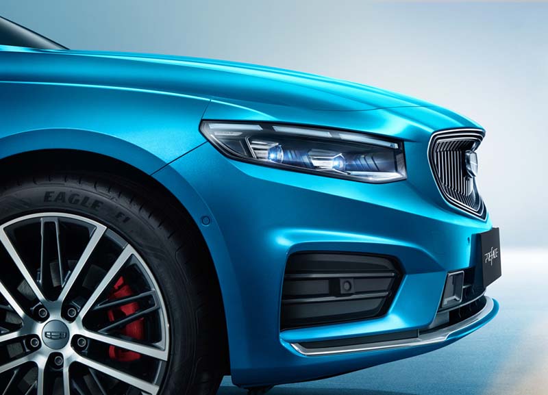 车身侧面,吉利PREFACE前脸的“扩散宇宙回想”前格栅延伸到了侧面车身轮廓线,以后视镜为原点,围绕侧车窗轮廓扩展并延伸至A柱,近似弹弓射击回旋的轨迹,突出了新车的力量感。