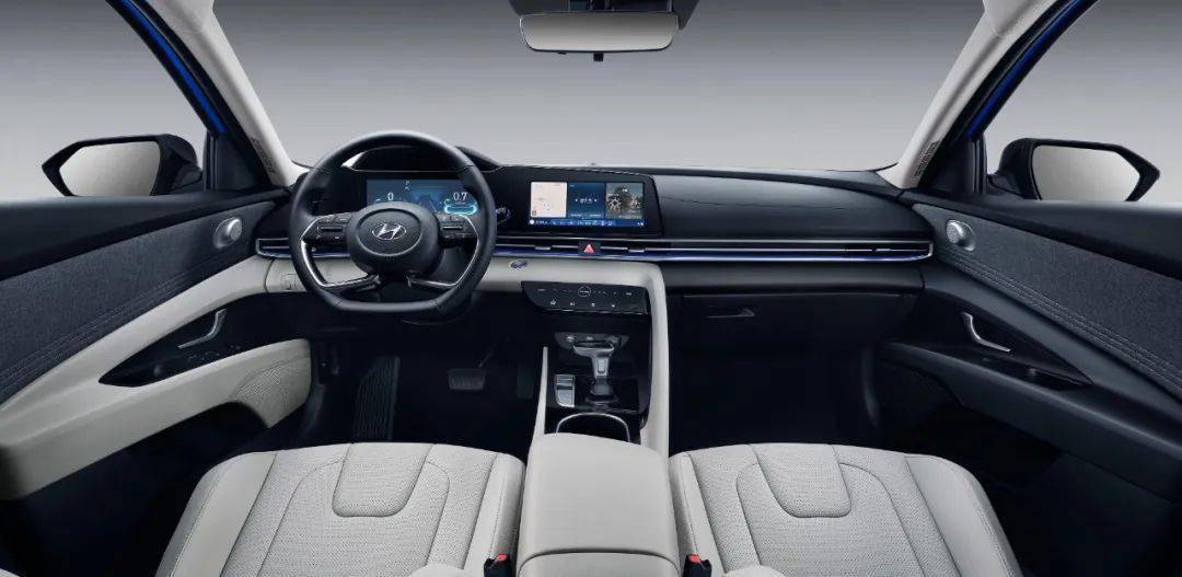 内饰方面,第七代伊兰特也很好的将科技感和运动感糅合在了一起,采用了以驾驶者为中心的沉浸式座舱设计,10.25英寸全液晶仪表盘+10.25英寸中控屏,采用了同级独有的连屏设计,并且在角度上作出了向驾驶席倾斜10°的细心设计,以便驾驶员观看。