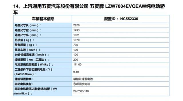 从曝光目录中能看到,宏光MINI EV有三款车型进入目录,三款车将搭载9kWh以及16kWh两种电池组,续航里程分别为120km和200km。很多人知道,目前在售的宏光MINI EV搭载最大功率20kW,最大扭矩85Nm的永磁同步电机,续航则提供120km和170km两种。而新增的200km续航车型则搭载了最大功率29kW,最大扭矩110Nm的永磁同步电机,并配备容量为16kWh的磷酸铁锂电池组,NEDC续航达到200km。
