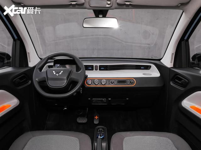 宏光MINI EV的内饰采用了内切式设计,利用挖切形体的手法,巧妙地拓展出内部空间,把人包围起来,增加了安全感; 同时挖掉的部分被利用成储物空间,增加了实用性,通过对门板、仪表台的挖切实现了空间的多功能利用,从而实现小车内的大空间设计。为了进一步增加后排乘客的腿部空间,设计团队还采用了轻薄化的座椅设计,并且后排座椅可以折平放倒,在只有两人乘坐的用车情况下,拓展出能够装载大件行李的空间。
