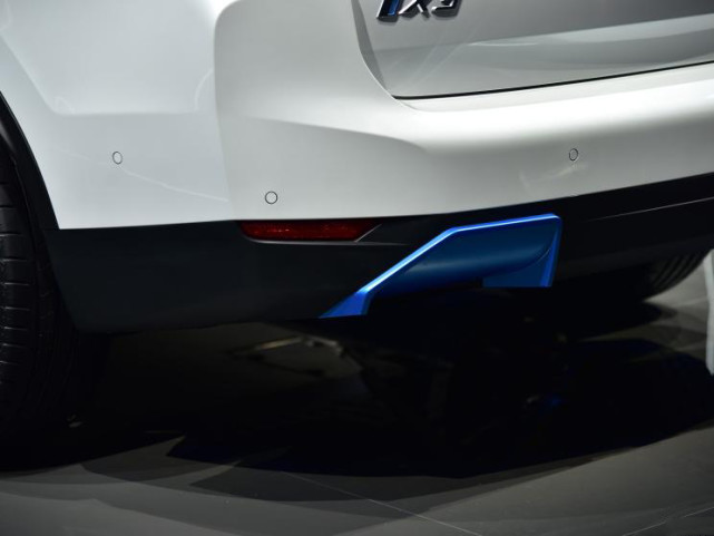 车尾造型则完全与燃油版X3相同,同样敦实且富有层次感。与燃油版车型最大的区别是底部没有排气口,同时后包围两侧还配备了蓝色的装饰板,品牌LOGO外围也多了蓝色装饰环,左边尾灯下方还张贴了“iX3”的尾标。