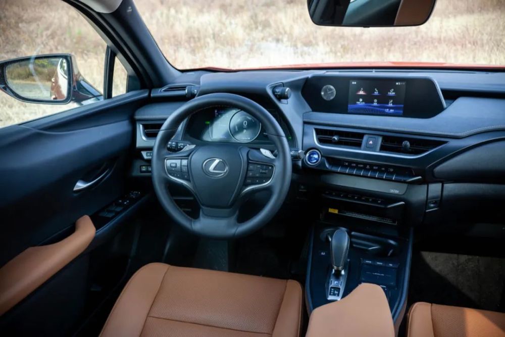 好在同为7英寸的液晶仪表盘通过线条的装饰提升了科技的味道,同样凸显科技感的还有液晶仪表盘上方左右两侧的旋钮,这样的设计已经广泛运用在雷克萨斯的几乎所有车型上。想要从内饰上区分出它与燃油版车型的不同也不是不可能,更加圆润短小的挡杆是UX 300e的专属,这让它看起来更加年轻。此外,燃油版车型全系缺失的无线充电功能终于出现在了UX 300e上,不过这是顶配车型的专属。