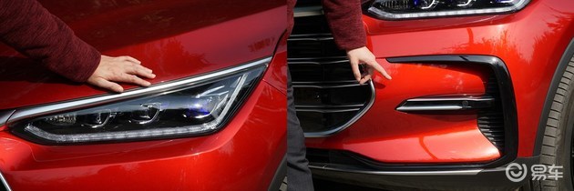 2021款唐DM前脸的变化主要是上格栅面积缩小,格栅边框更粗大,前包围两侧的进气口造型更犀利,并融入了亮黑色扰流件,视觉冲击力和高端感明显。悬浮式龙晶LED前大灯蓄势待发的气概更加明显!