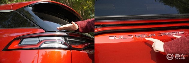 车尾贯穿式尾灯依然引人注目,而BUILD YOUR DREAMS英文采用了新字体,更有设计感。后包围区域呼应前包围,做了亮黑饰条处理,更有动感,使整车的设计完成度非常高。