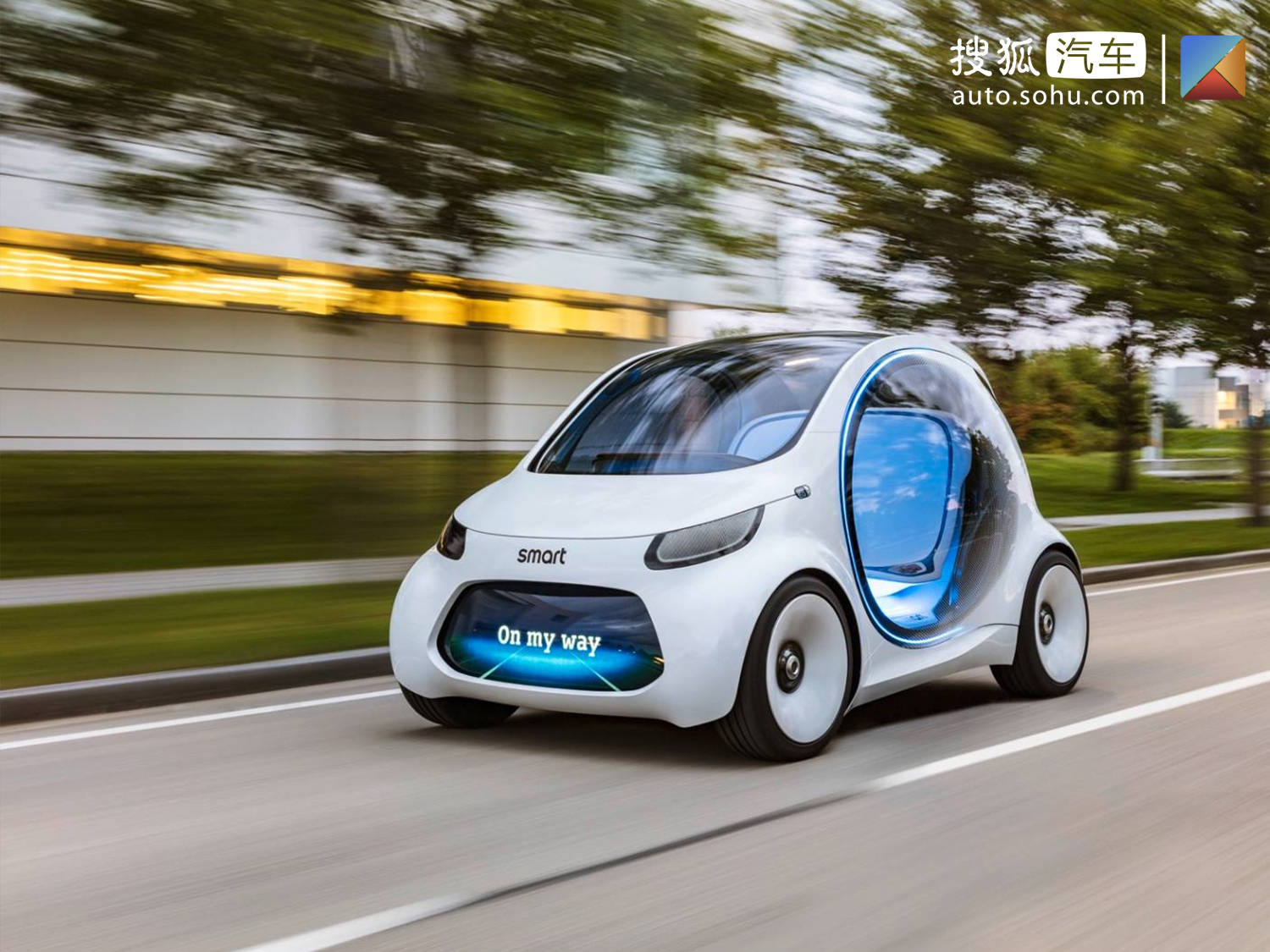 该车在外形上与普通版smart fortwo保持一致,它具备L5级完全自动驾驶技术。该车向大家展示如何用科技使未来汽车共享出行变得更便捷、更简单、更高效经济。得益于集群智能和自动驾驶,车辆能够自动找到乘客并完成接驳。车内智能显示器能够播放乘客间的共同话题,让车成为社交的第三空间。LED显示器取代了传统的大灯,可以变换多种情绪表达,而车前格栅屏幕更能与行人和其他车辆进行拟人化交流,充满了“人格魅力”。