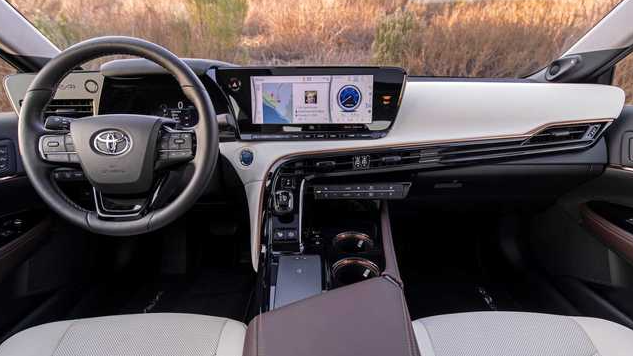 从内饰来看这台车档次感很强,双大屏加上大面积的真皮材质包裹相当豪华精致。配置部分第二代Mirai配有12.3英寸中控屏、8英寸液晶屏、HUD抬头显示、前排座椅加热/通风以及14扬声器JBL音响系统等实用性配置,可以说丰田已经将功力用在内饰升级和优化上,这也说明氢燃料动力系统本身已经日渐成熟。在悬挂上这台车采用的是前后多连杆的独立悬挂,作为中大型轿车这种悬挂更厚道安稳,驾驶性能和舒适性都非常出色。