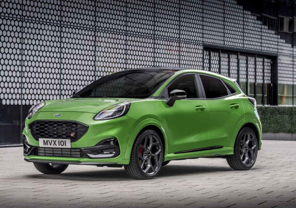 2021款福特PUMA ST的外观非常的耀眼夺目,采用了绿色的车漆涂装。而且前脸部分配备有青蛙眼造型的大灯组,感觉汽车就像是一个大尺寸的青蛙一般,非常灵动可爱。前脸部分大嘴样式的进气格栅,配备有菱形的黑色网格装饰。而且在右下方设置有ST红色字母标志,凸显了2021款福特PUMA ST独特的身份。