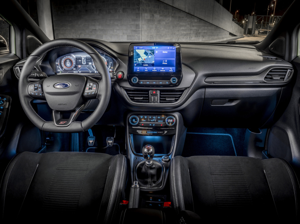 比较了解汽车的小伙伴,来到这款汽车的内饰,或许会有一种非常亲切的感觉。因为2021款福特PUMA ST的内饰,与福特全新款嘉年华的布局非常相似。车内配备悬浮式的中控液晶显示屏,以及平底多功能方向盘。所配备的全液晶仪表盘分辨率很高,并且显示信息充足并且动画效果非常出色。作为一款运动型的车型当然会配备非常酷炫的运动座椅,新车采用的是桶形的座椅,而且靠背还带有翻毛皮材质包裹,触感非常舒适细腻。
