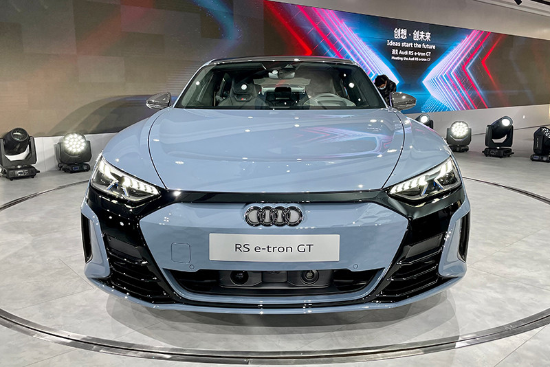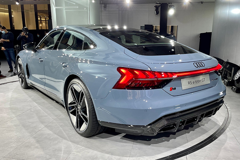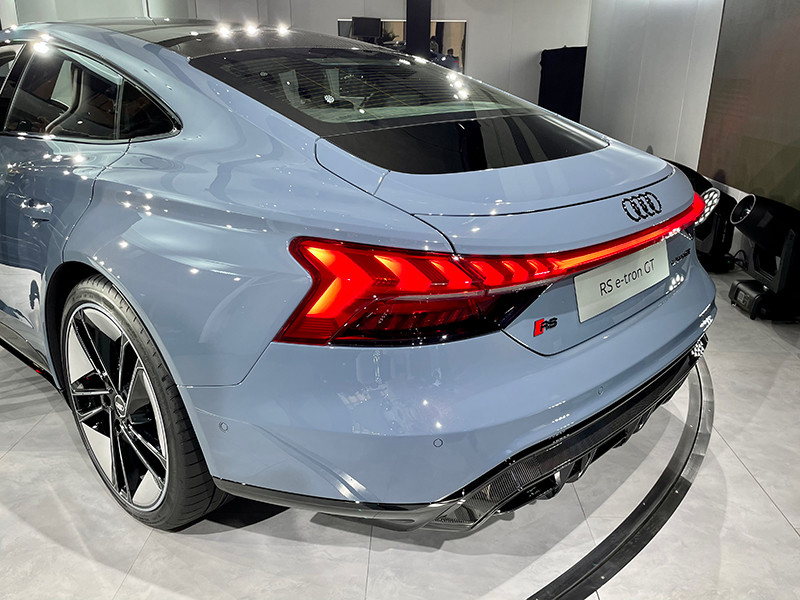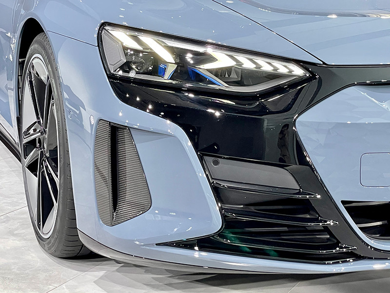 奥迪RS e-tron GT与前不久发布的e-tron GT一样,都是基于奥迪与保时捷共同研发的J1纯电平台打造的,并主攻高性能车型。同样RS车型也延续了e-tron GT的造型设计,但在性能配置方面则进一步提升。例如:RS车型标配了矩阵式LED大灯,其中顶配版为带有蓝色点缀装饰的激光矩阵式LED大灯,激光点安装于近光灯模块旁,当车辆时速为70km/h,激光点开始激活,可使远光灯射程扩大一倍。