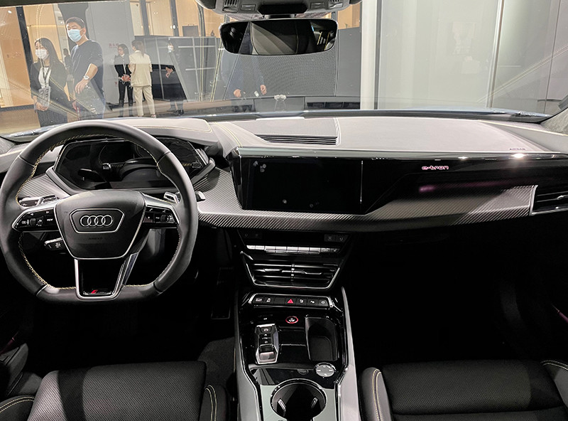 内饰方面,尽管RS车型与e-tron GT同样都采用了以驾驶员为中心的布局,中控台均微微向左倾斜,这也使得3D仪表台设计更显立体感,同时最新家族式设计风格则延续了极具科技的设计美感,但RS车型在细节上更显动感。例如:RS车型有采用超细纤维制成的仪表板包覆材质,方向盘、中控则以红色或灰色缝线为内饰增添了一抹亮色。另外,RS车型的方向盘、座椅等部分还配有RS的专属标识。