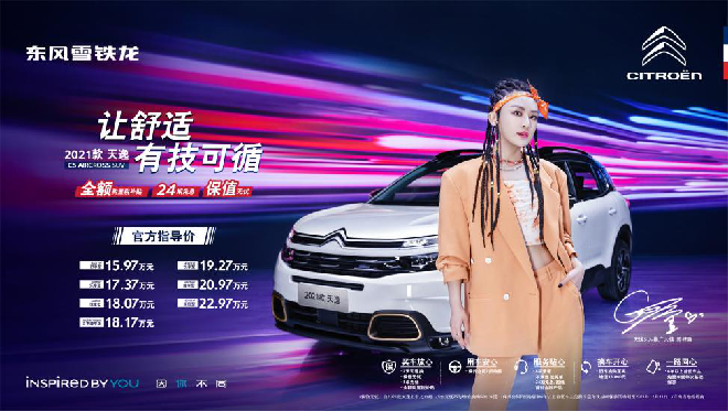 用坚持树立舒适产品标杆,续写品牌传奇立足用户需求,打造舒适标杆!雪铁龙品牌,历经百年,无惧风浪!正是凭借这股韧性、智慧和魅力,让雪铁龙成为在全球拥有五千万用户的传奇品牌。站在雪铁龙品牌第二个百年的起点上,东风雪铁龙将持续地打造行业“舒适标杆”。而所谓的舒适,绝不仅仅是悬挂舒适、过坎平稳不颠。这种舒适更是静谧的享受、宽敞的空间、人性化的使用体验,是幸福感,是身心舒适。未来,东风雪铁龙 “舒适”的品牌印记,必将通过一款款“宝藏”车型让用户一入法系,终身法系! 无论是产品舒适配置的全新升级,还是增配不增加的价格政策,以及定制的保值无忧服务,2021款天逸C5 AIRCROSS的上市,彰显了东风雪铁龙对待市场和消费者的诚心、诚意与诚品,更让我们看到一个越来越走心的东风雪铁龙。我们有理由相信, 2021款天逸C5 AIRCROSS这款“宝藏”车,一定会让中国消费者超出期待,成为紧凑级SUV市场强有力的竞争车型,并助力雪铁龙续写品牌传奇!