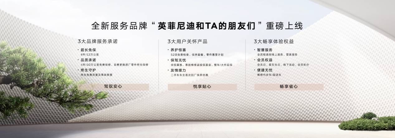 全新的布局,从新车型到新服务品牌。以全新服务品牌“英菲尼迪和TA的朋友们”,为广大朋友陆续带来3大品牌服务承诺、3大用户关怀产品与3大畅享体验权益,尊享超越期待的豪华价值,夯实英菲尼迪品牌在中国豪华汽车市场的地位。