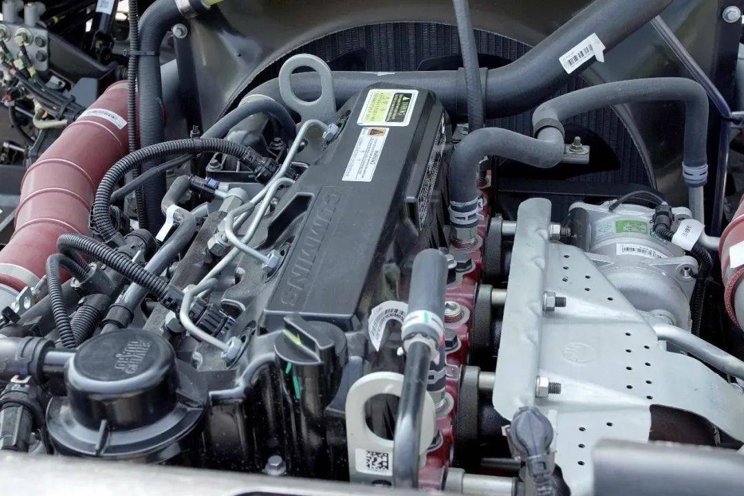实拍车型搭载康明斯四缸发动机,最大功率220马力,最大扭矩850牛米,此外,欧航R pro 2.0版还可搭载康明斯B6.2L六缸柴油发动机,最大马力260匹,最大扭矩1050牛米,动力强劲还省油,另外,六缸发动机最大爬坡度达到34%,重载上坡轻松应对。