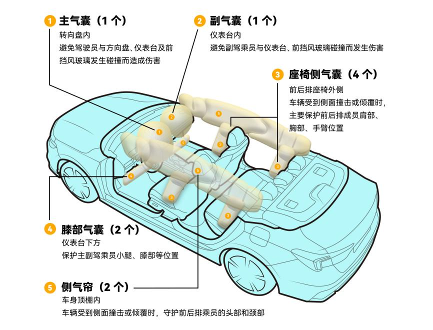 除了拥有一副超高安全的车身“骨骼”,型格(INTEGRA)还全系标配了10个安全气囊,几乎是同级通常配备数量的两倍,将被动安全性能拔升到超越A级车的高度。其中,主、副气囊置身仪表台内,当碰撞发生时,避免前排驾乘人员与方向盘、仪表台及挡风玻璃相撞造成的二次伤害;前后排座椅外侧分布有4个侧气囊,当车辆受到侧面撞击时,有效保护前后排驾乘人员的肩部、手部和胸部位置;仪表台下方还配置了2个膝部气囊,有效缓冲正面碰撞对前排乘客小腿、膝部的伤害;车身顶棚内置了2个侧气帘,保护车内成员的头部和颈部。