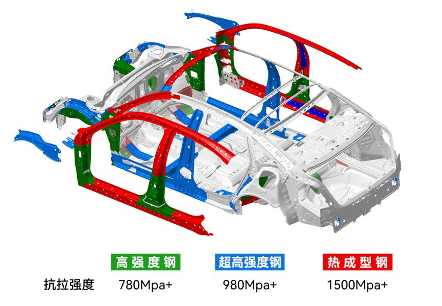 在此基础上,型格(INTEGRA)高刚性车身中抗拉强度980MPa以上的超高强度钢板占比达24.5%,其中抗拉强度达1500MPa的热成型钢板占比达10.6%。具体来看,A柱、B柱和顶棚前横梁大量采用了抗拉强度1500MPa以上的热成型钢板,有效保护乘员舱;B柱内层、前轮罩及其上部、顶棚中横梁、前地板骨架、内门槛等部位则采用了抗拉强度980MPa以上的超高强度钢板,做到刚柔并济。