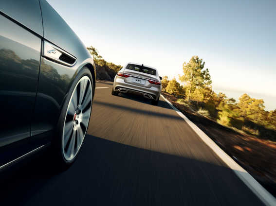 身着英国赛车绿的科技驾控轿车捷豹XEL,则呈现赛车竞速般的洒脱感,配合大嘴式格栅、标志性J-Blade豹锋眼LED前大灯、流线型的修长车身、贯穿车侧的凌厉腰线和钻石切割轮毂,凸显与众不同的动感身姿,唤醒内心的不驯猛兽,以灵动矫健之姿征服前路。