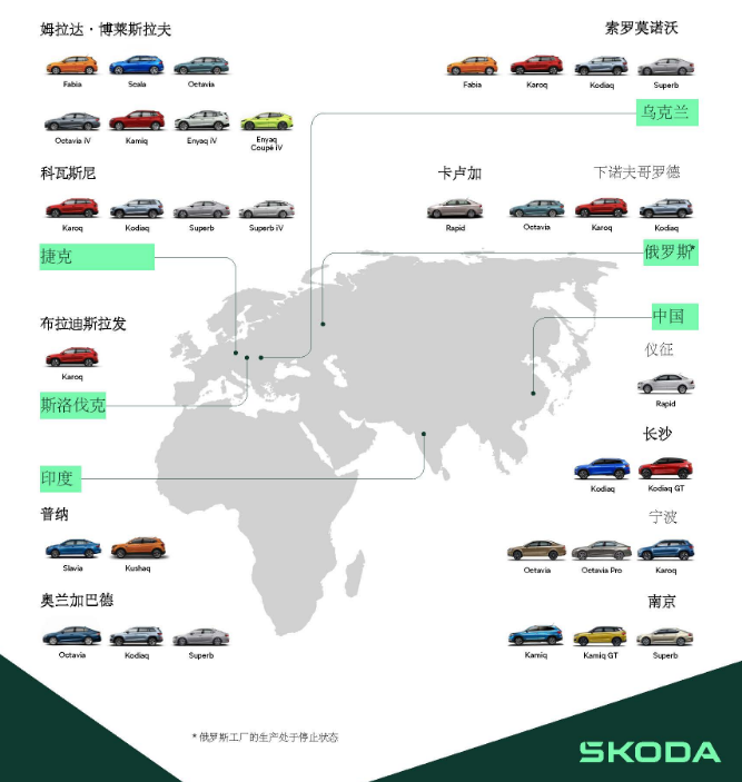 2022年2月,大众汽车集团董事会决定无限期暂停在俄罗斯的生产和对俄罗斯的汽车出口,这一决定涉及斯柯达在俄罗斯下诺夫哥罗德和卡卢加的两家工厂。