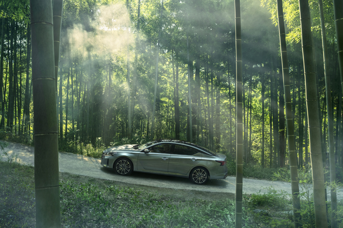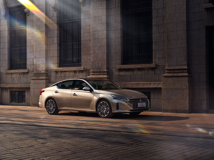 全新天籁的车侧则是以流畅突出的腰线与悬浮式车顶营造出高端稳重的风格,加上19英寸多幅条轮圈加持,再次强化车身气场,使整车更具精致感,呈现出利落修长的高级形象。