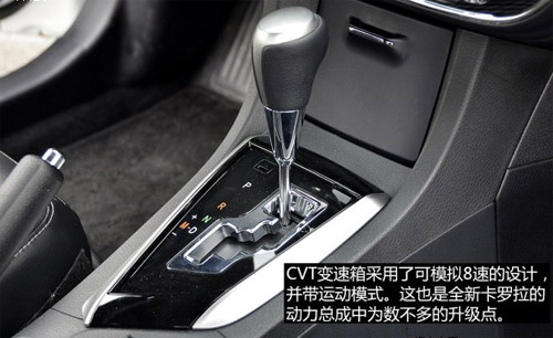 同时,CVT在平稳驾驶、灵活操控和静谧性等方面的性能优势也得以完全的保留。一汽丰田在试驾过程中设置了“静谧性”试验,车内安装的分贝测试仪在试驾途中不同的路段、不同的车速下测试了车内的噪音,不超过55分贝的噪音体现了全面新卡罗拉优异静谧性。(50~55分贝达到国家I类环境噪音标准,即白天居住、办公区标准。)