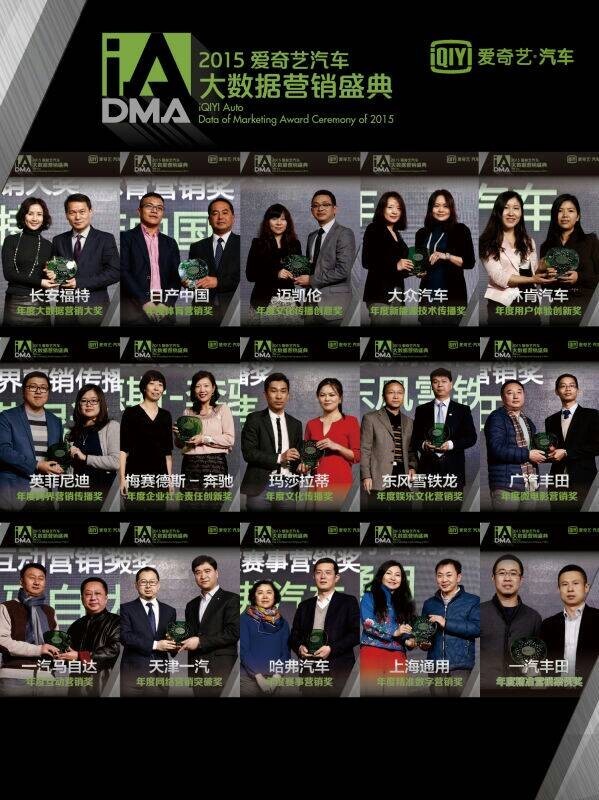 2015年 1月13日,“2015爱奇艺汽车·大数据营销盛典”在北京盛大举行。作为汽车行业大数据营销的先行者,爱奇艺汽车整合爱奇艺和百度平台的资源优势,并依托平台数据进行全方位的立体调研分析,评选出了“年度大数据奖”、“年度大事件奖”、“年度大数据创意奖”等三大类共计19个重磅奖项。