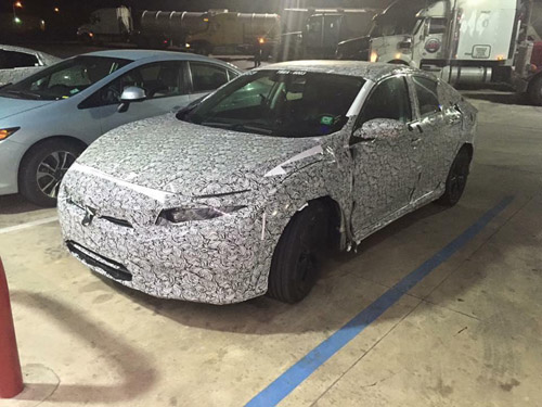 最近有人在美国德州拍到了下一代本田思域量产版照片并发到网上。从照片看,这是一辆全身伪装的思域原型车,它采用了量产版车身。现在唯一能确定的是这是一辆早期测试车,该车采用LED飞去来器形尾灯组,面积比前代车型更大,前后悬更短,离地间隙更小。从四月曝光的专利图看,新一代思域外观设计更显档次,包括肌肉感侧面轮廓和向后延伸前大灯。在上市之初预计将提供轿跑车和轿车版本,这两款车外观风格与本田在今年纽约车展发布的思域概念车非常接近。根据目前所知,2016款思域将搭载1.5升涡轮汽油引擎,搭配六速手动或新开发的CVT变速器。