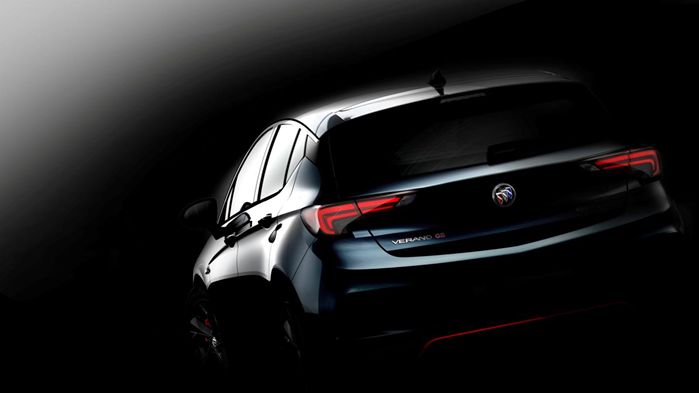 The teaser image doesn't reveal much but Buick says the hatchback will have flowing bodylines, a floating roofline and a "front grille that is seamlessly connected to wing-shaped headlights."