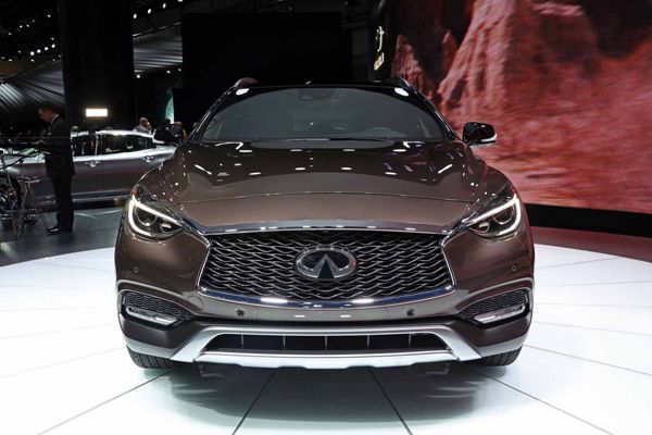 英菲尼迪近日在洛杉矶车展发布了QX30量产版。QX30基本上可以视作是重新贴牌的奔驰GLA,就像Q30基于奔驰A级车一样。它的很多外观设计,包括塑料车身防擦条,车顶行李架,都与Q30共享。另外,它的整体外观非常突出运动感,与QX30概念版车型非常接近。车厢内设计类似Q30掀背车,很多细节也类似奔驰GLA,虽然这不能说是一个不好的做法,但对于希望能看到QX30与奔驰GLA有更多不同的消费者而言则至少有些令人失望。虽然英菲尼迪不愿透露该车更多技术细节,但表示,这款车提供了全驱系统,可将至少一半动力传递至后轮以确保更优异的牵引力。很明显,这款车采用了奔驰的4MATIC系统并搭配带手动模式的双离合器变速箱。至于动力系统,QX30预计与Q30共享,包括一台1.6升涡轮引擎,功率90千瓦/122马力和115千瓦/156马力,更大的2.0升涡轮引擎,功率155千瓦/211马力。柴油引擎包括1.5升引擎,功率80千瓦/109马力;2.2升引擎,功率125千瓦/170马力。某些引擎可提供六速手动变速器。QX30将在英国桑德兰工厂投产,随后将于明年中期上市。