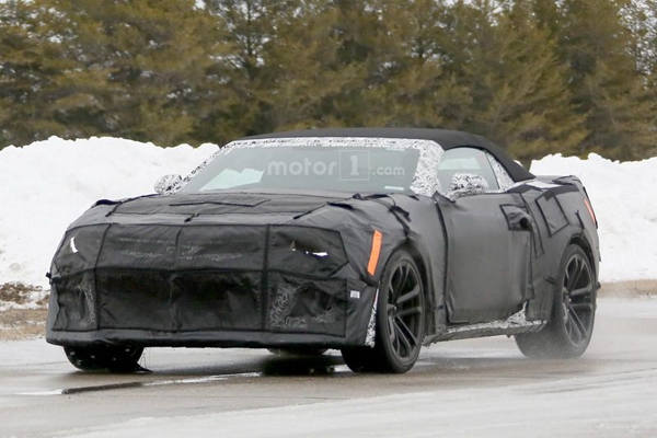 Dressed in heavy camouflage, the high-performance model will follow in the footsteps of the Camaro ZL1 Coupe and feature an aggressive front fascia with larger air intakes and mesh grille inserts. The car will also be equipped with a bulging hood, sportier side skirts, and a four-tailpipe sports exhaust system. Buyers will also find a retractable soft top that can be opened or closed at speeds up to 30 miles per hour.